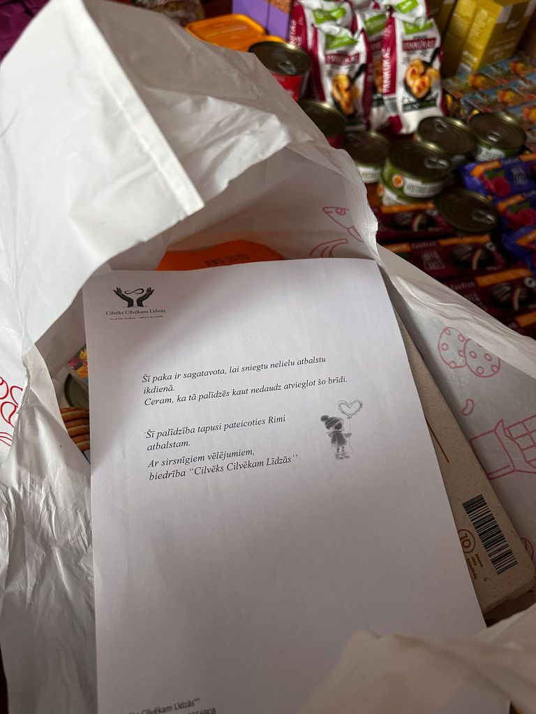 Ziedojumā saņemtās pārtikas un sadzīves preces tiks nodotas ģimenēm, kurām šobrīd nepieciešams papildu atbalsts. Šī palīdzība būtiski atvieglo mūsu darbu un ļauj sniegt praktisku atbalstu tiem, kam tas visvairāk nepieciešams.